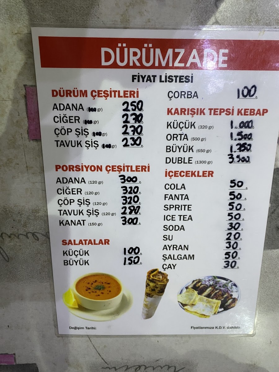- Customer favorites include the Chicken & Liver dürüm and beef Adana kebab.